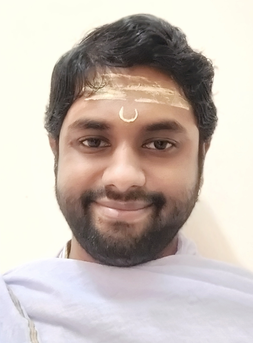 A dedicated traditional scholar who has studied the Rigveda Samhita, Trained in Nyaya Sastra under Purva Mimamsa Ratnam Brahmashri Dr. K. S. Maheswaran Namboothiri (Asst. Prof. in Advaita Vedanta, The Madras Sanskrit College), completed his Nyaya Siromani from The Madras Sanskrit College SSV Patashala, Mylapore, Chennai.
